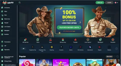 Eén ding mag duidelijk zijn dit casino heeft zeker weten geen thema dat je echt elke dag tegenkomt in het casino. Ze doen er alles aan om iets unieks neer te zetten. Uiteraard kom je weleens vaker een western thema tegen bij online casino’s. Maar het blijft een zeldzame combinatie die je echt niet altijd tegenkomt. Bij Bilucky is het thema ook nog eens perfect uitgewerkt. Dit maakt het al helemaal een feestje om hier een account bij aan te maken. Buiten een tof thema geven ze duidelijk ook de ruimte aan alle casino spellen. De populairste games staan direct uitgelicht in het casino.