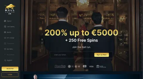 Net als het logo is de sign up knop van puur goud gemaakt. Klik erop om een account aan te maken bij Bull Casino 24.