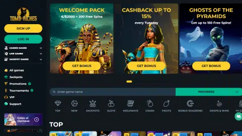 Tomb Riches casino heeft een uitgebreid spelaanbod