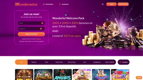 De eerste indruk bij het Wunderwins online casino is dat het een vrij moderne goksite is om te zien. Direct zie je de welkomstbonus die voor je klaarstaat als je een account aanmaakt. Daarnaast zie je meteen al een selectie met de populaire gokkasten waar je op kan gokken. In één oogopslag krijg je meteen al een prima eerste indruk van het casino. Uiteraard kan je als je verder scrolt ook al zien welke spelers er de afgelopen uren gewonnen hebben. De grote prijzen worden hierbij uitgelicht en je weet zo meteen of ze echt wonderen werkelijkheid maken.