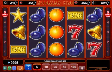 De online gokkast die op deze pagina gratis gespeeld kan worden is de Extremely Hot gokkast van European Gaming Technology. EGT gokkasten staan bekend om hun meestal klassieke slotmachine thema’s. Het betekent dat je tijdens het spelen van traditioneel gokken kunt genieten. De symbolen die op de rollen voorbijkomen zijn de bekende soorten fruit, bellen, sterren en bar goudstaven. Tevens heb je de mogelijkheid om gewonnen prijzen te verdubbelen met een gokspel en zijn er vier verschillende jackpotten die gewonnen kunnen worden. Deze eigenschappen in combinatie met een uitstekend uitbetalingspercentage zijn genoeg reden om de slot voor echt geld te spelen in een online casino.