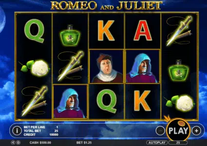 Laat dan nu de rollen draaien en speel op deze slot. Probeer zoveel mogelijk winnende combinaties te maken en hou Romeo en Juliet in de gaten.